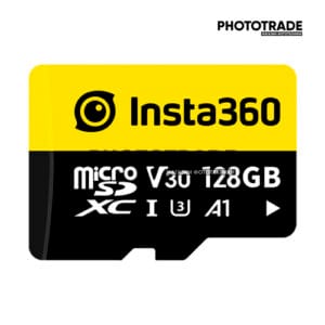 Карта памяти UHS-I microSDXC объемом 128 ГБ от Insta360 совместима с широким спектром устройств microSD. Она имеет емкость хранения 128 ГБ, соответствует спецификации A1 для повышения производительности на мобильных устройствах и обеспечивает минимальную скорость записи 30 МБ/с, что делает ее пригодной для записи видео 4K.