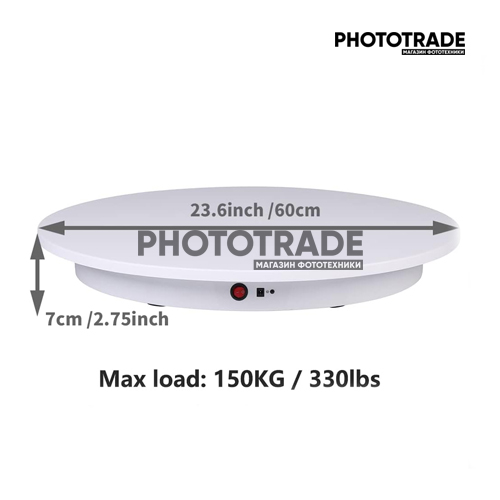• Большой размер и большая нагрузка: диаметр 23,6 дюйма (60 см), нагрузка 330 фунтов (150 кг), подходит для демонстрации более крупных и тяжелых товаров, даже женская модель может стоять на поворотном столе для фотосъемки или показа в режиме реального времени. (Для очень маленьких и легких товаров, пожалуйста, рассмотрите возможность использования другого поворотного стола меньшего размера.)