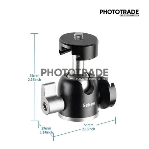 ГлавнаяШтативыШтативы для фото и видеокамер Selens Cold Shoe Mini Ball Head SP13-BH19II