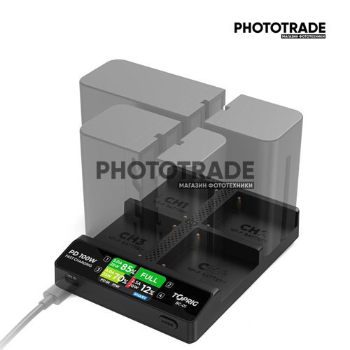 • Toprig 4-канальное зарядное устройство для аккумуляторов NP-F с ЖК-дисплеем, входом питания USB-C PD 100 Вт для Sony NP-F550, NP-F750, NP-F970 или других аккумуляторов серии NP-F